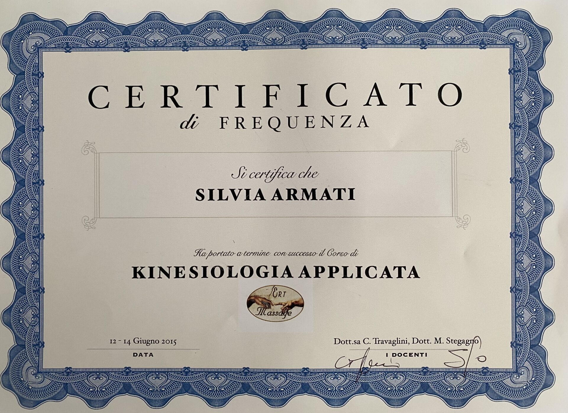 Corso di specializzazione tenuto dalla Dott.ssa C. Travaglini, pediatra esperta in medicina integrata, e dal Dott. M. Stegagno, agopuntore. La certificazione ha fornito competenze in Kinesiologia Applicata, concentrandosi sulle seguenti tematiche: